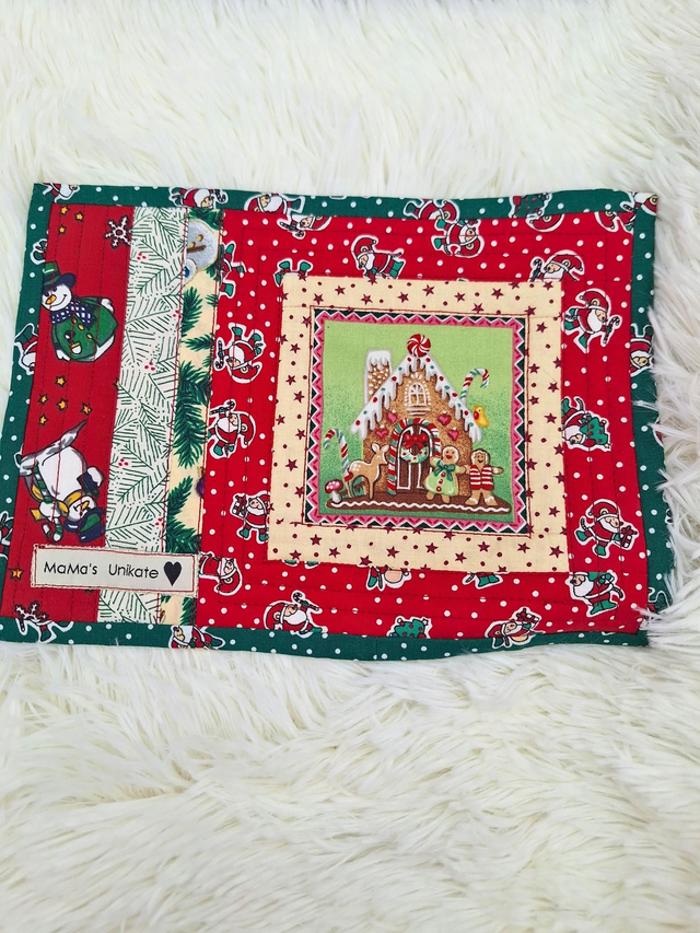 Festliche Motive: Die Vorderseite ist aus wunderschönen Stoffen im Patchwork-Stil gefertigt, die sofort Weihnachtsstimmung verbreiten. Die Rückseite ist mit einem farblich passenden Stoff genäht
